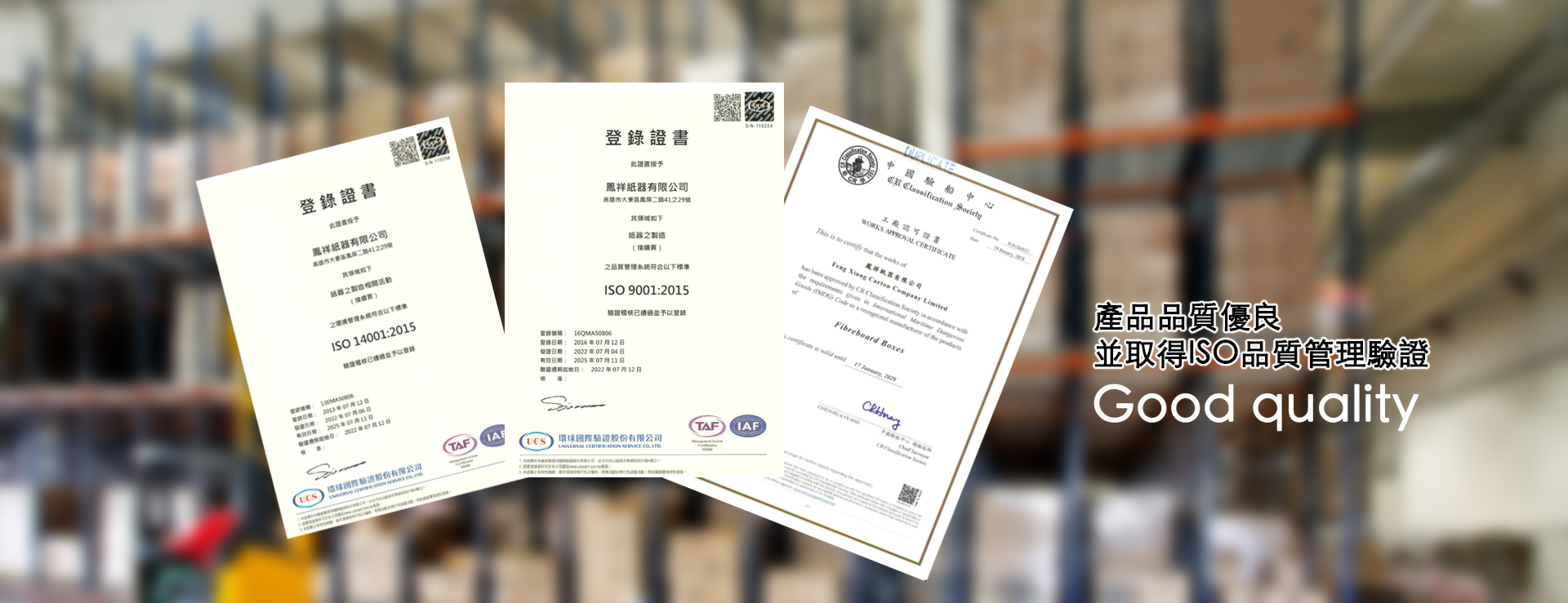 鳳祥創立於民國1985年,專業製造各類瓦楞紙箱,先進生產設備、專業製造技術、高效運輸車隊、嚴謹品質管理,秉持「誠信」原則,提供完善服務,高品質、高效能製作出符合各行業紙箱需求,並在2021年通過FSC驗證。